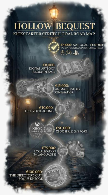Ako se dosadašnji tempo nastavi, Hollow Bequest bi uz osnovnu verziju mogao dobiti i niz dodatnih sadržaja koji bi proširili ovu mračnu detektivsku avanturu smještenu u svijet inspiriran Lovecraftovim motivima.